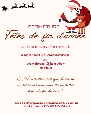 Fermeture de la Mairie du 26 décembre 2025 au 2 janvier 2026